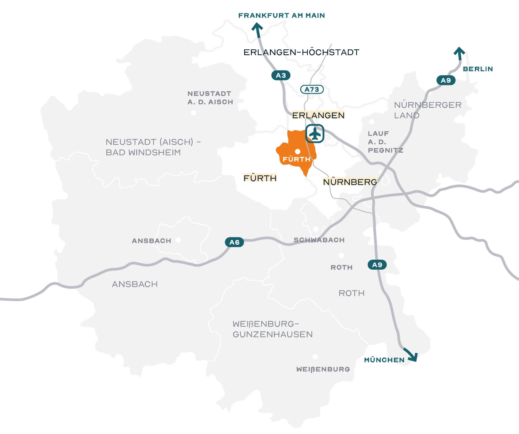Fürth bietet einen zukunftssicheren Standort mit besonders aussichtsreichen Perspektiven für die Vermietung.